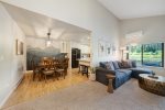 This home is located at the end of the street, so it was very private. We enjoyed watching the ducks on the pond and golfers on the course from the patio. We even saw a bald eagle soaring overhead. The kitchen is nicely updated, along with several bathrooms, and looks to be freshly painted. All the kitchen utensils, dishes, pots and pans, silverware, glasses, bed linens, towels, and most of the furniture--was brand new! It was clean and well-maintained with comfortable furniture. I would definitely recommend this home to anyone looking for a relaxing getaway. So glad it had A/C as it gets warm sometimes in the afternoon/evening. We also found two breweries nearby, and really cute shops. We also loved the coffee shops and the local Frostee.